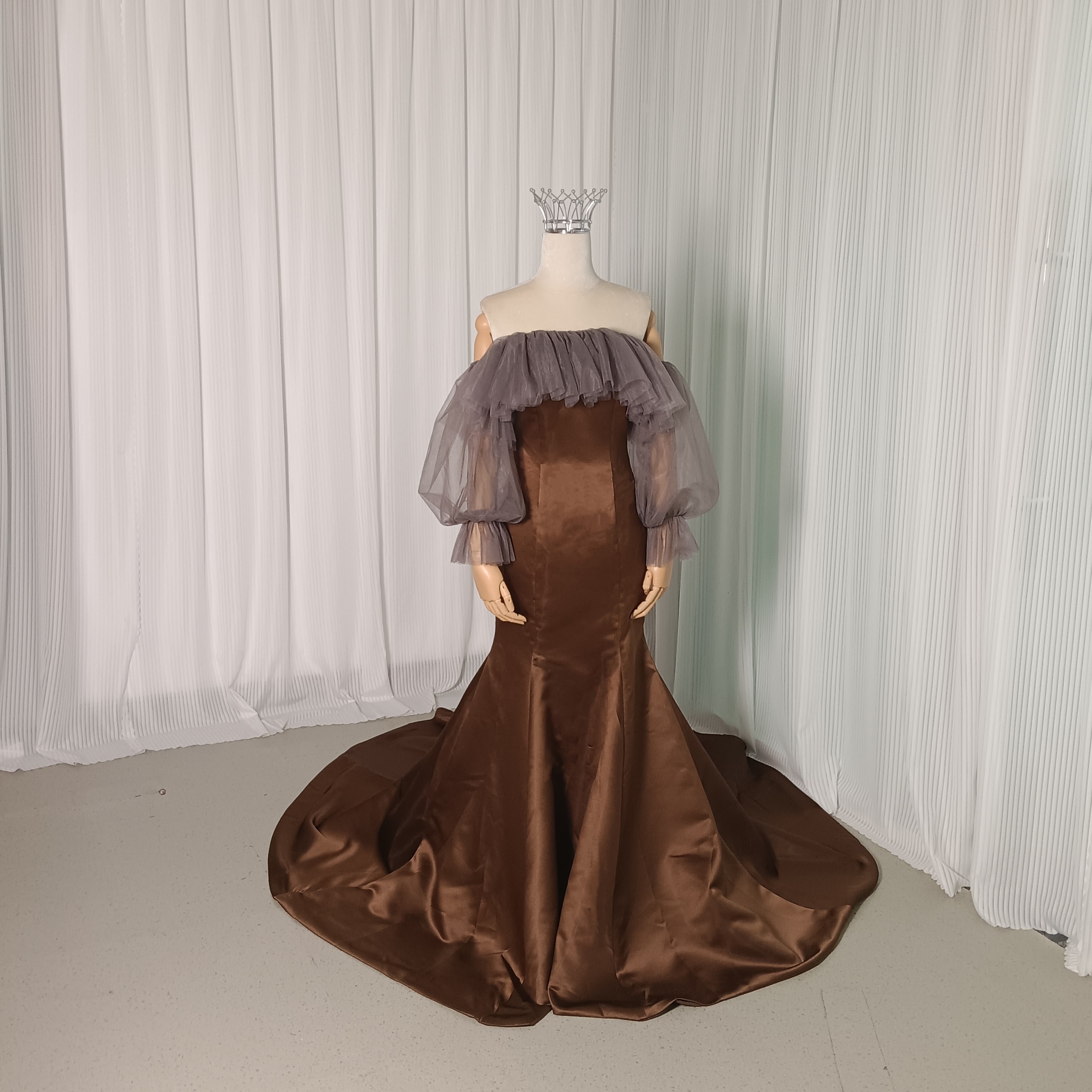 シャンパン色の明るいドレス女性の高級感があります